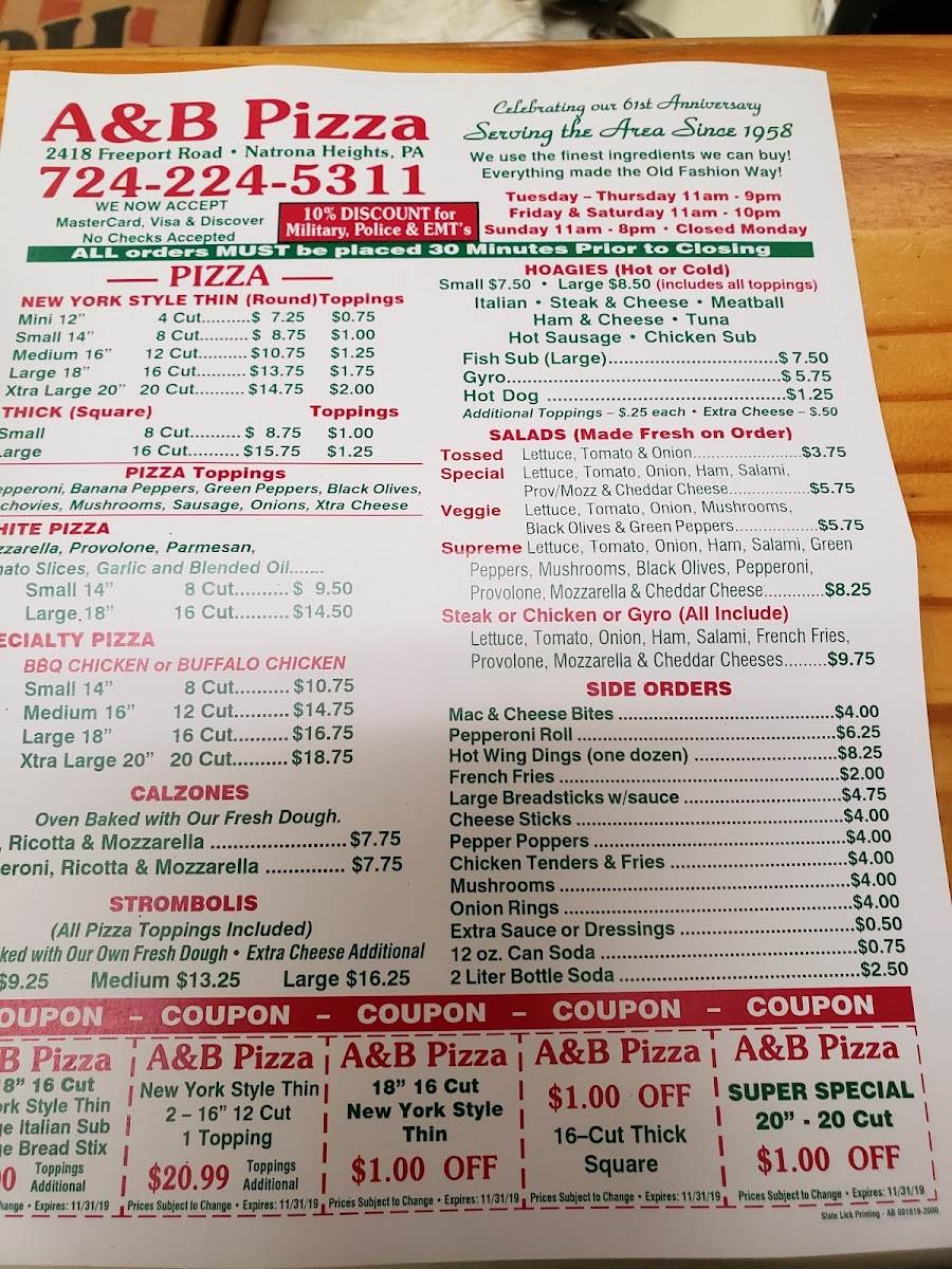Welcome to A&B Pizza, your new favorite pizza destination located in Natrona Heights, PA! Known for its superior quality, A&B Pizza stands out in the crowded pizza market with rave reviews from satisfied customers. Whether you're ordering for a family gathering like Branden Rupert did for his daughter’s birthday or seeking a quick bite, A&B consistently delivers deliciousness.